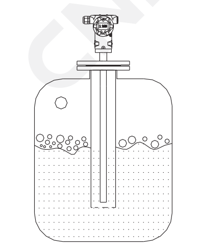 直接安裝 1.大部分使用場合 2.液面波動不劇烈、液面無大量泡沫層 3.纜式、桿式適合 *容器是金屬的,直接利用容器殼體接地(測量地)