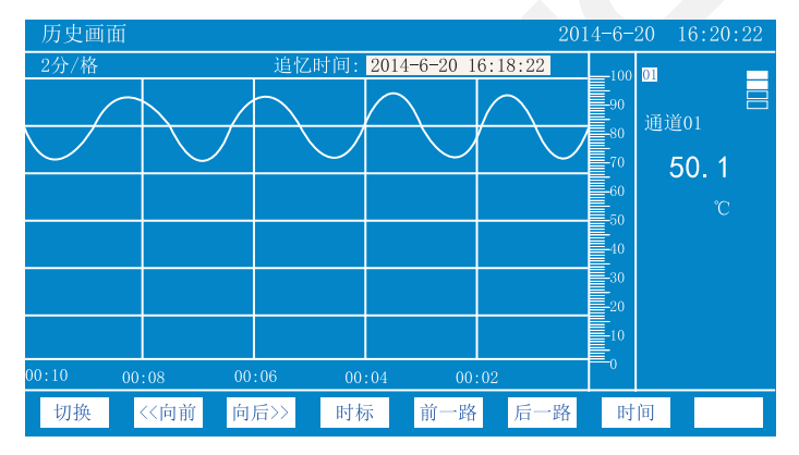 6、歷史畫面:可向前或向后查看保存在內(nèi)存中的歷史數(shù)據(jù)。