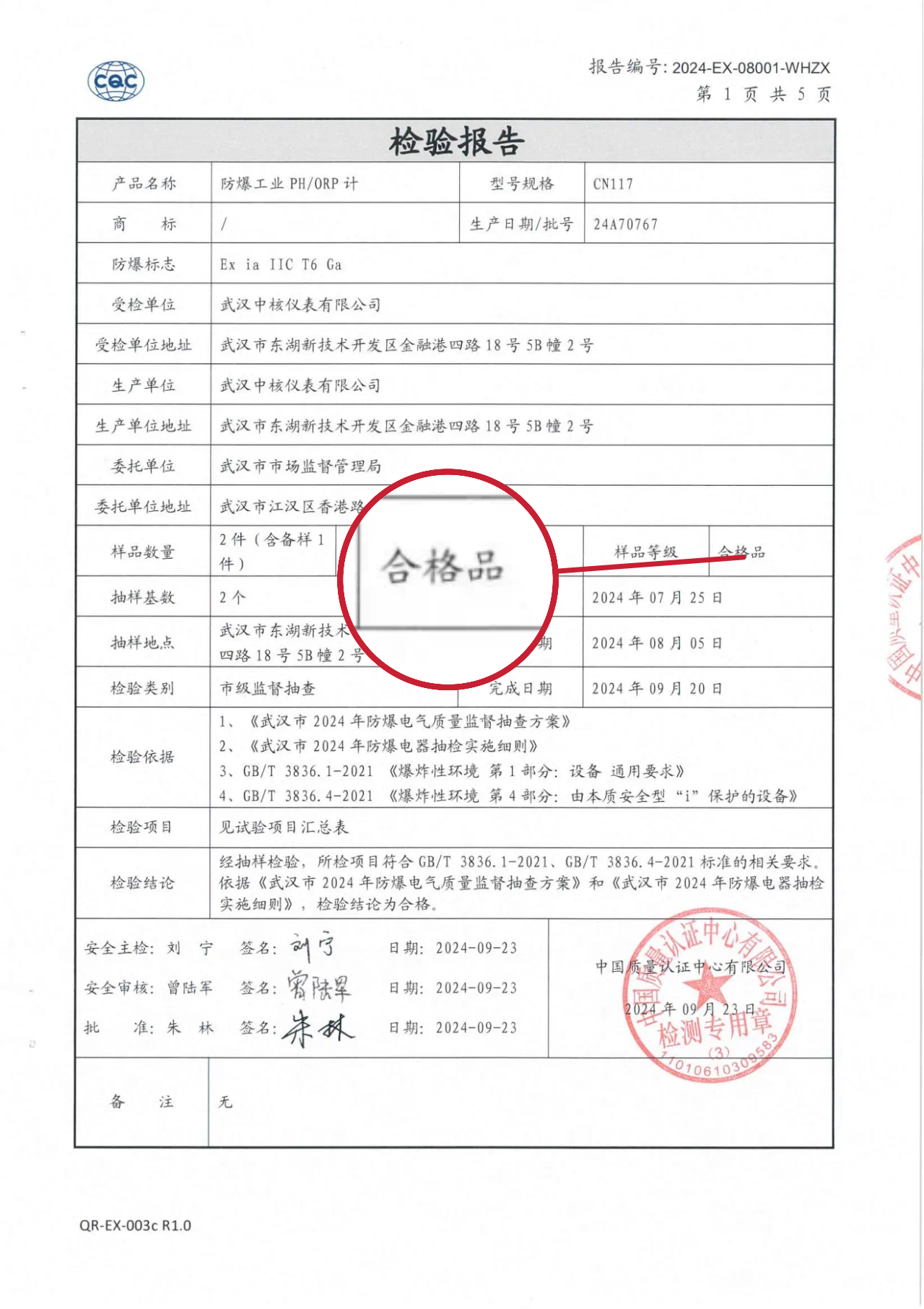 按照國(guó)家市場(chǎng)監(jiān)督管理總局要求,本次抽檢采取“隨機(jī)抽樣”形式,重點(diǎn)抽取本地區(qū)產(chǎn)業(yè)聚集、消費(fèi)使用量大的產(chǎn)品,以切實(shí)反映武漢地區(qū)工業(yè)產(chǎn)品總體質(zhì)量狀況。中核儀表防爆工業(yè)pH/ORP計(jì)在本次抽檢之列,并由中國(guó)質(zhì)量認(rèn)證中心承檢。以下為抽檢結(jié)果展示,測(cè)定樣品為合格品。