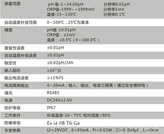 可廣泛應用于火電、化工化肥、冶金、環(huán)保、制藥、生化、食品和自來水等溶液中pH值或ORP值的連續(xù)監(jiān)測。變送器采用防爆鑄鋁外殼,密封性能好防護等級最高可達IP67,特別適用于現(xiàn)場環(huán)境惡劣、不宜人員久留的工業(yè)場所。