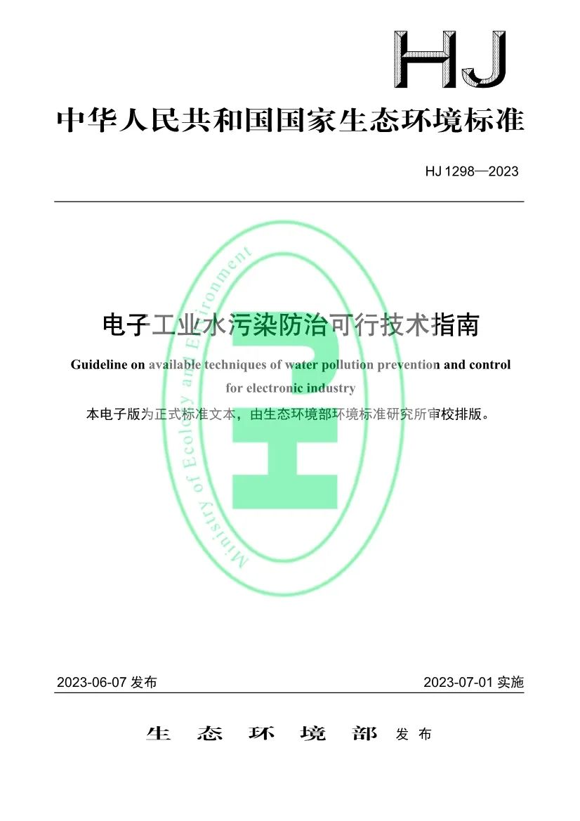 《電子工業(yè)水污染防治可行技術(shù)指南》(HJ 1298-2023)