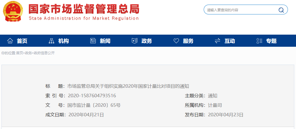 為更好發(fā)揮計量比對在保障量值準(zhǔn)確一致、支撐計量事中事后監(jiān)管和提升計量技術(shù)機(jī)構(gòu)能力等方面的重要作用,通過組織征集、形式審查和專家評審等,從各單位申報項目中確定29項為2020年國家計量比對項目。