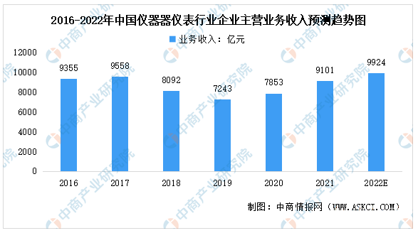 隨著節(jié)能降耗、低碳經(jīng)濟、民生產(chǎn)業(yè)、戰(zhàn)略性新興產(chǎn)業(yè)的持續(xù)發(fā)展以及國家對食品安全和環(huán)境保護的重視程度加大,為我國儀器儀表行業(yè)帶來了新的機遇。中商產(chǎn)業(yè)研究院預(yù)測,2022年我國儀器儀表行業(yè)企業(yè)主營業(yè)務(wù)收入將達9924億元。