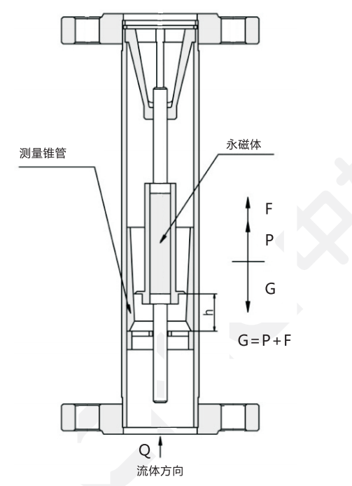 浮子在測(cè)量管中,隨著流量的變化,將浮子向上移動(dòng),早某一位置浮子所受的浮力與浮力重力達(dá)到平衡。此時(shí)浮子與孔板(或椎管)間的流通環(huán)隙面積保持一定。環(huán)隙面積與浮子的上升高度成正比,即浮子在測(cè)量管中上升的位置代表流量的大小,變化浮子的位置由浮子內(nèi)部永磁體傳輸?shù)酵獠康闹甘酒?,使指示器正確地指示此時(shí)的流量值,同時(shí)通過(guò)調(diào)制電路,將信號(hào)轉(zhuǎn)換成標(biāo)準(zhǔn)4~20mA電流信號(hào)或者數(shù)字信號(hào)輸出。