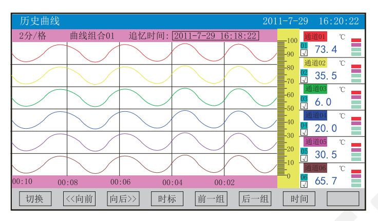 6、歷史畫面:可向前或向后查看保存在內(nèi)存中的歷史數(shù)據(jù)。
