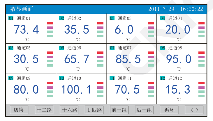 2、數(shù)顯畫面:顯示實時測量值,同時還可顯示通道位號、工程單位及報警狀態(tài)等信息。