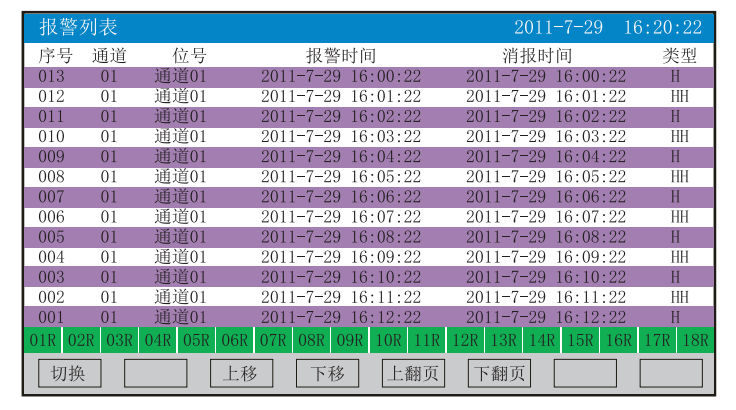 3、報警列表:顯示最近的通道報警時間、消報時間及報警狀態(tài)等信息。