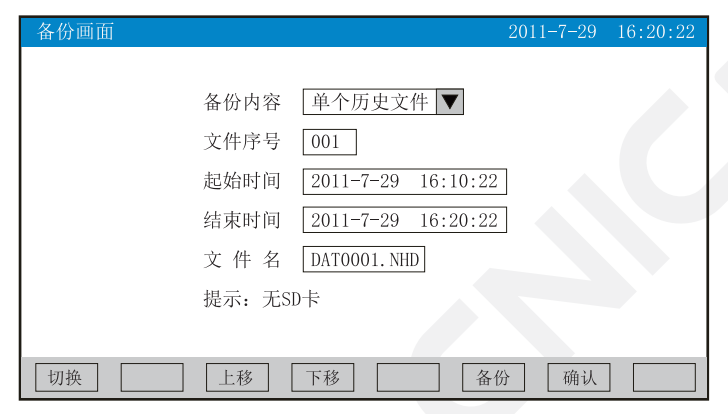 4、備份畫面:可通過設(shè)定起始時間和結(jié)束時間來備份這段時間的數(shù)據(jù)。