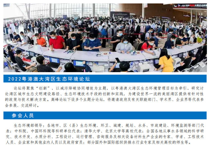 活動將充分發(fā)揮中國生態(tài)文明研究與促進會的智囊智庫、支撐服務(wù)、橋梁紐帶作用,邀請政府及有關(guān)職能部門、學(xué)術(shù)界代表、企業(yè)界代表等,通過專題論壇、技術(shù)與設(shè)備展覽展示、公眾活動等形式,打造粵港澳大灣區(qū)生態(tài)文明建設(shè)的高端專業(yè)平臺。
