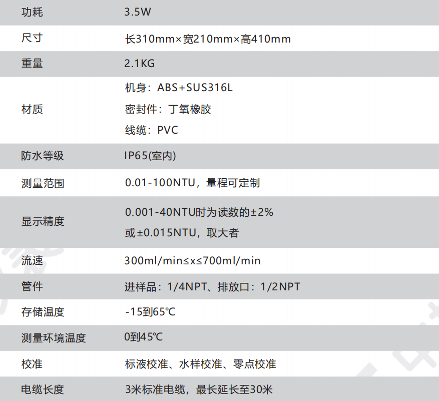 1.一種連續(xù)讀數(shù)的散射濁度計,專門用于低量程濁度監(jiān)測;